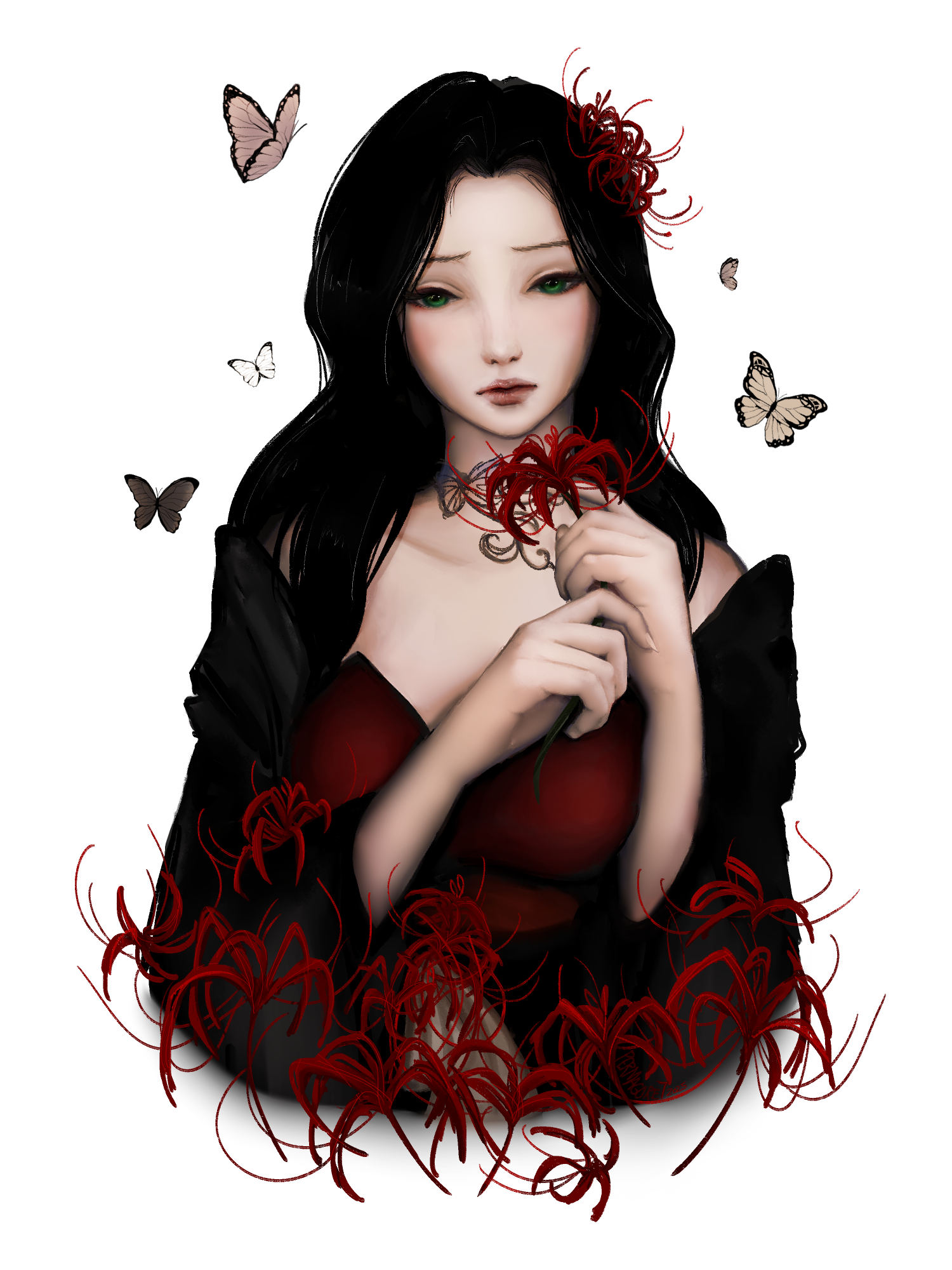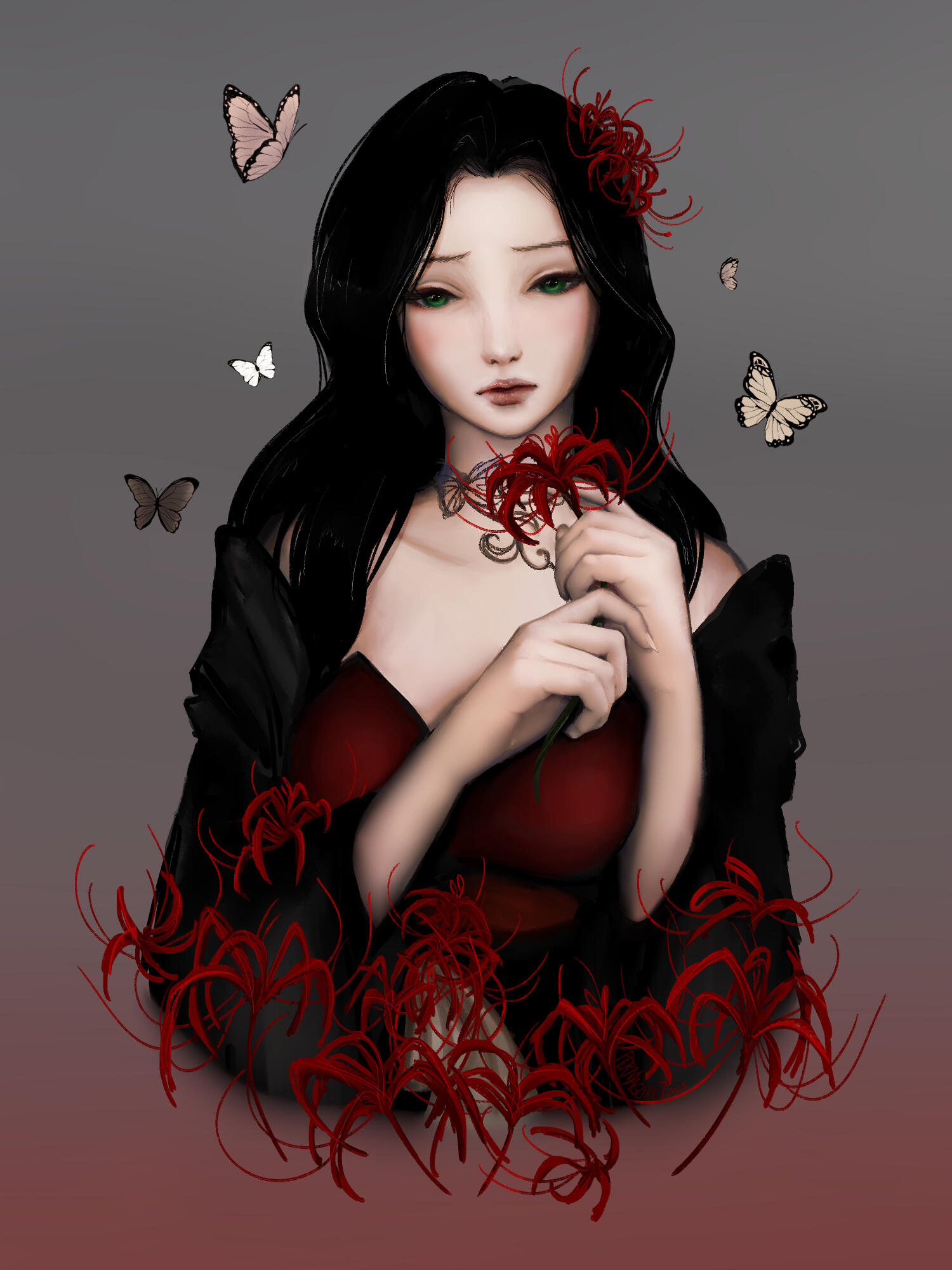 * Red Spider Lily: A flower of memory, sacrifice, and death. It blooms around her like a warning or a blessing.