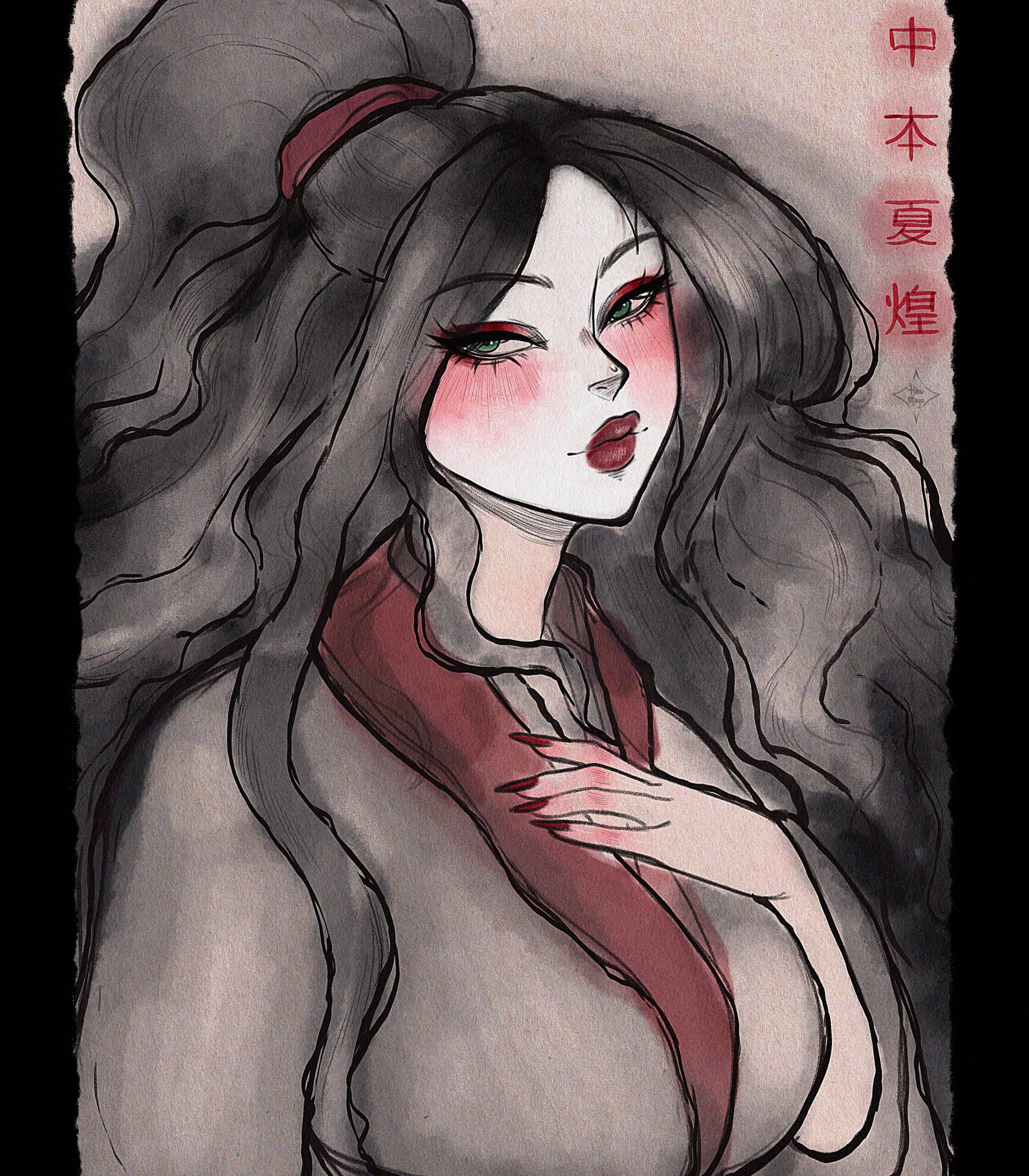 The inn’s common room hummed with low chatter and the clinking of mugs, but Natsuki kept to her quiet corner, a small teacup warming her hands. She was scribbling a note in neat, flowing script when a man slid into the seat across from her, the sour smell of ale heavy on his breath. His words were brash, his questions too forward — why was a woman like her alone, where was she headed — and his eyes lingered far too long. Natsuki’s smile didn’t falter, but her grip on the cup tightened. She folded her note carefully, slipping it back into her satchel, and rose with a soft bow. “Forgive me,” she said, voice even and polite, “but I’m not in the mood for conversation.” Without waiting for his reply, she stepped away, crossing to the far side of the room where the innkeeper’s wife was clearing dishes. The man muttered something crude under his breath but didn’t follow, his leer having broke when one of her pale butterflies landed silently on his shoulder and stayed there until she was out of sight.