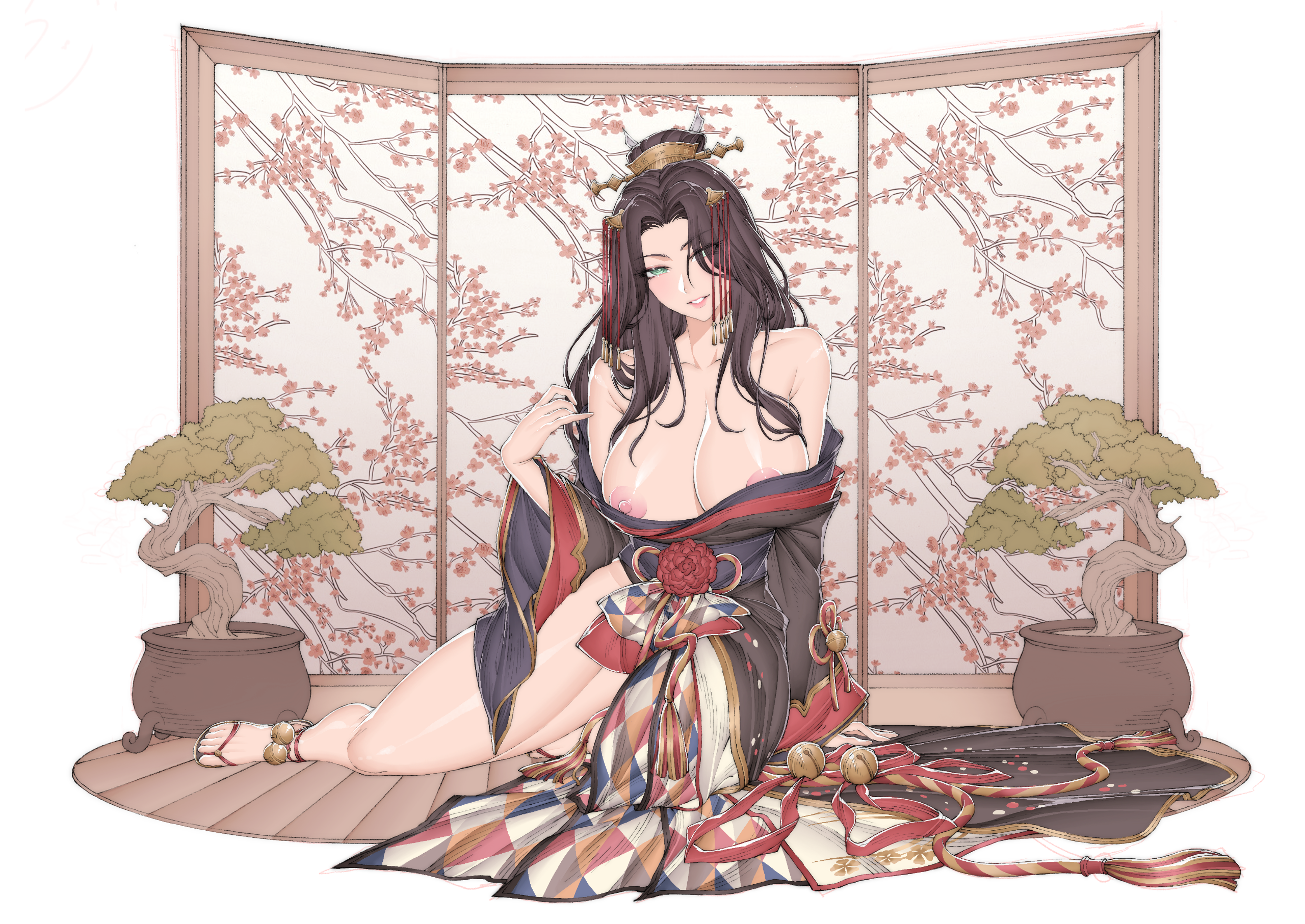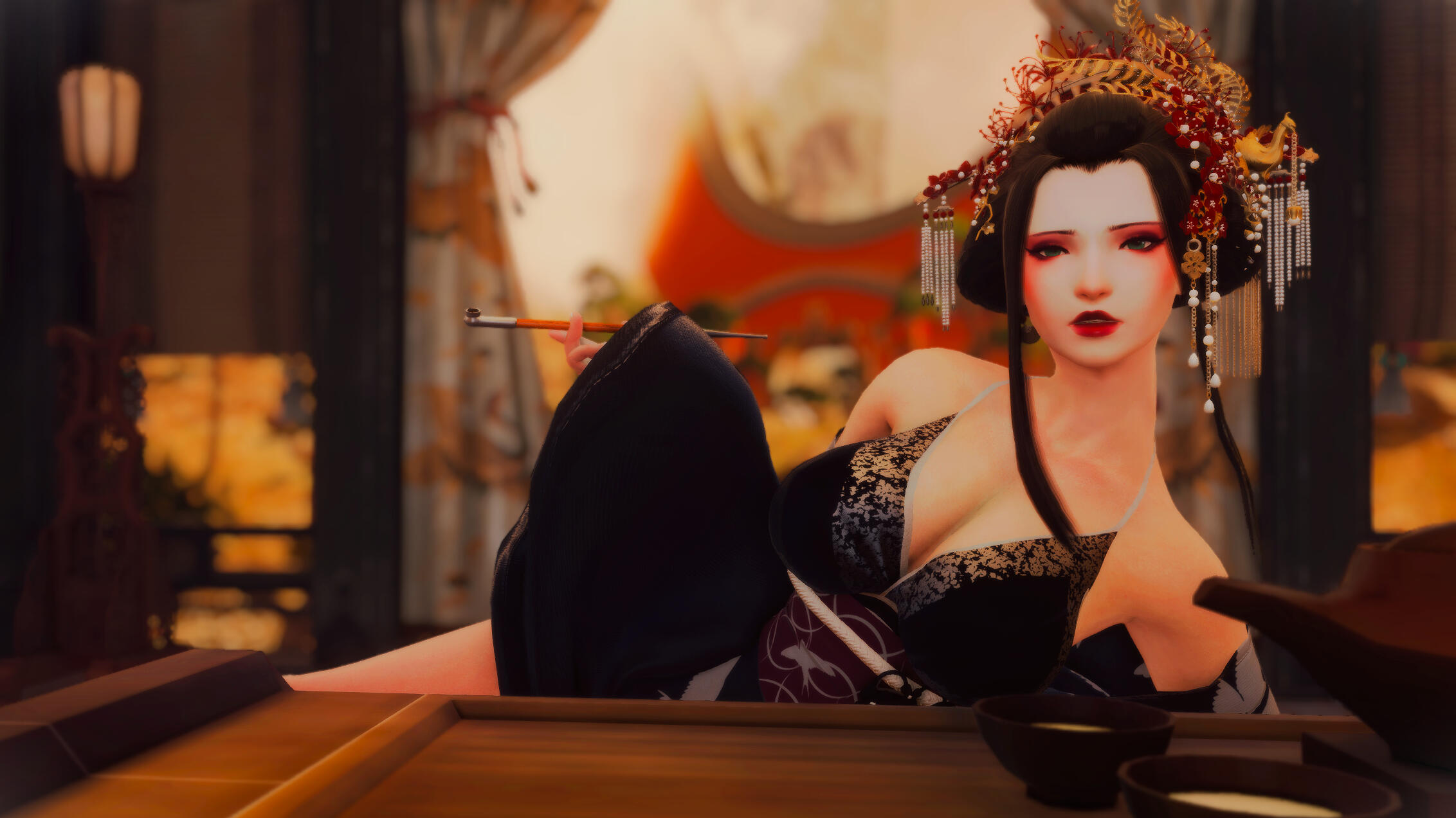 In the quiet of her rented room, away from watchful eyes, Natsuki sat cross-legged on the floor before a small lacquered box. Inside lay her little collection of indulgences: hairpins of glass, metal and jade, a silk ribbon dyed in deep plum, a tiny compact of blush she’d bartered for weeks ago but never used. She reached for the ribbon first, running the smooth fabric between her fingers, then chose a hairpin shaped like a blooming camellia. In the mirror, she pinned her hair high, tilting her head to admire the way it caught the candlelight. There was no one to see it, no festival to attend. It was hers alone — a single, private rebellion against a life given entirely to others. For a while, she let herself stay there, gazing at her own reflection as though memorizing the sight of a woman who could still choose something for herself.